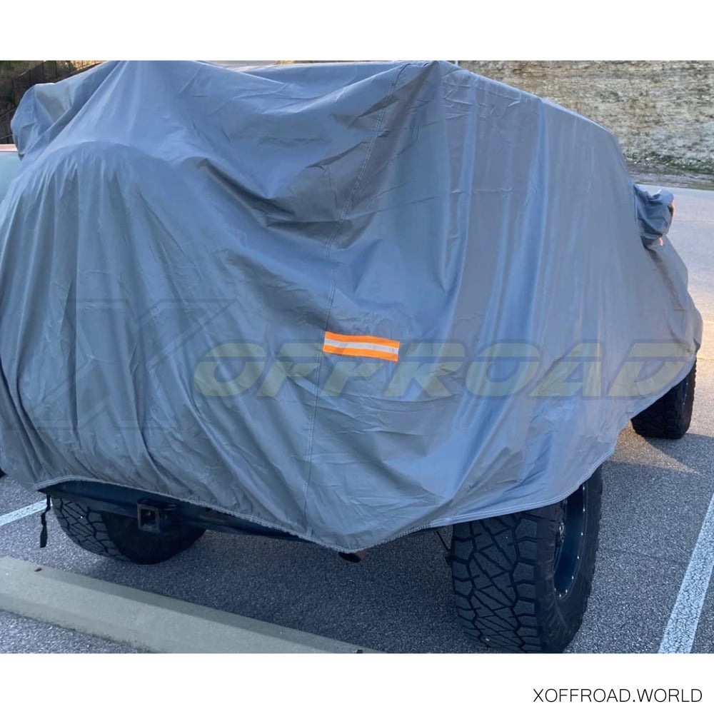 Protect your Wrangler's finish against the elements with a X-Offroad All Weather Protection Full Cover. This Indoor/Outdoor car cover will provide protection from the suns UV rays, bird droppings, tree sap and brutal wintry conditions all of which can break down and harm your Wrangler's clear coat finish. Custom Fit to Your Specific Body Style. This X-Offroad Cover is custom designed to fit 4-Door Wrangler models perfectly. The Cover is made from a breathable, 4 layer, black polypropylene material which offers exceptional tear resistance. Additionally, the seams are double stitched utilizing high-quality thread to resist fraying.