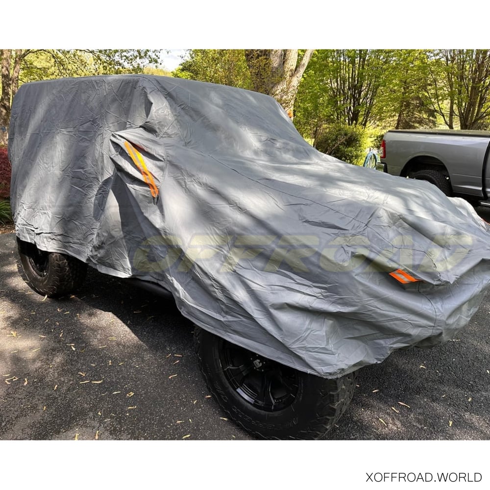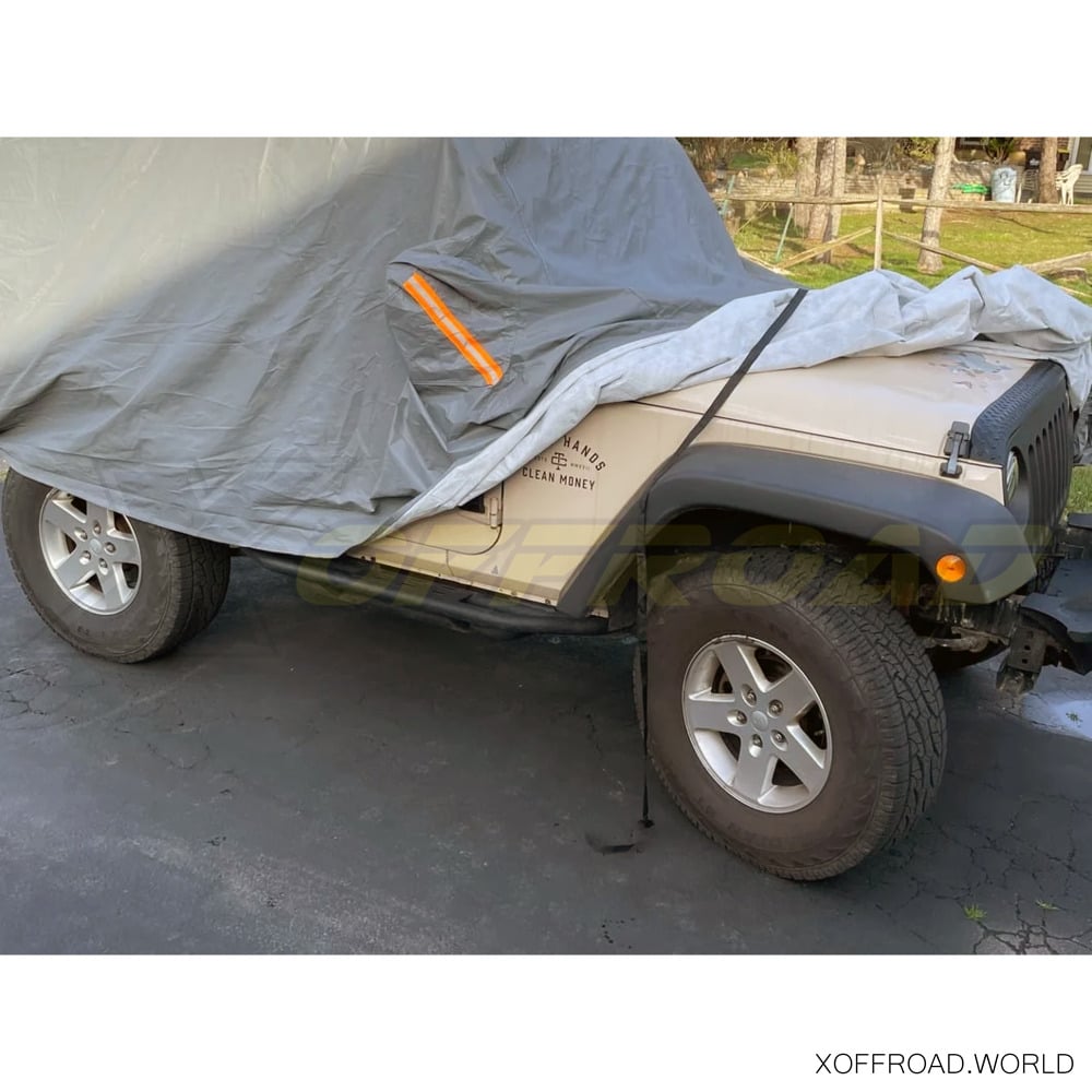 Protect your Wrangler's finish against the elements with a X-Offroad All Weather Protection Full Cover. This Indoor/Outdoor car cover will provide protection from the suns UV rays, bird droppings, tree sap and brutal wintry conditions all of which can break down and harm your Wrangler's clear coat finish. Custom Fit to Your Specific Body Style. This X-Offroad Cover is custom designed to fit 2-Door Wrangler & CJ's models perfectly. The Cover is made from a breathable, 4 layer, black polypropylene material which offers exceptional tear resistance. Additionally, the seams are double stitched utilizing high-quality thread to resist fraying.