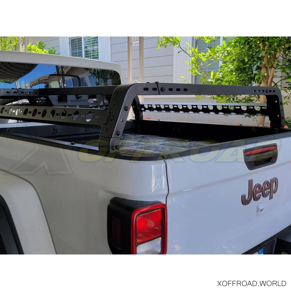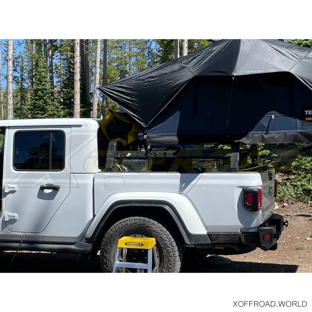 Make the most out of the bed on your Jeep Gladiator JT with the X-Offroad Bed Rack System. Designed to bolt onto the bed, this upgrade gives you more than enough space to carry all your gear and cargo. Plus, it boasts a gorgeous black color that complements your vehicle’s rugged style. Featuring thick steel construction, the Bed Rack has the strength to not only secure your equipment, but endure the harshest driving conditions as well. The X-Offroad Bed Rack System is designed to allow you to carry a variety of gear and equipment with complete convenience. It also sits high, off the bed side, so you can mount larger, heavier, and taller accessories with no problem.