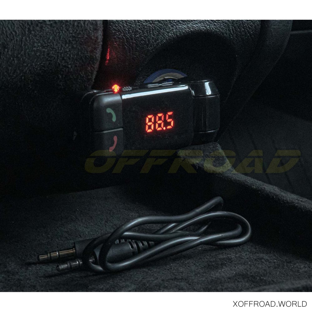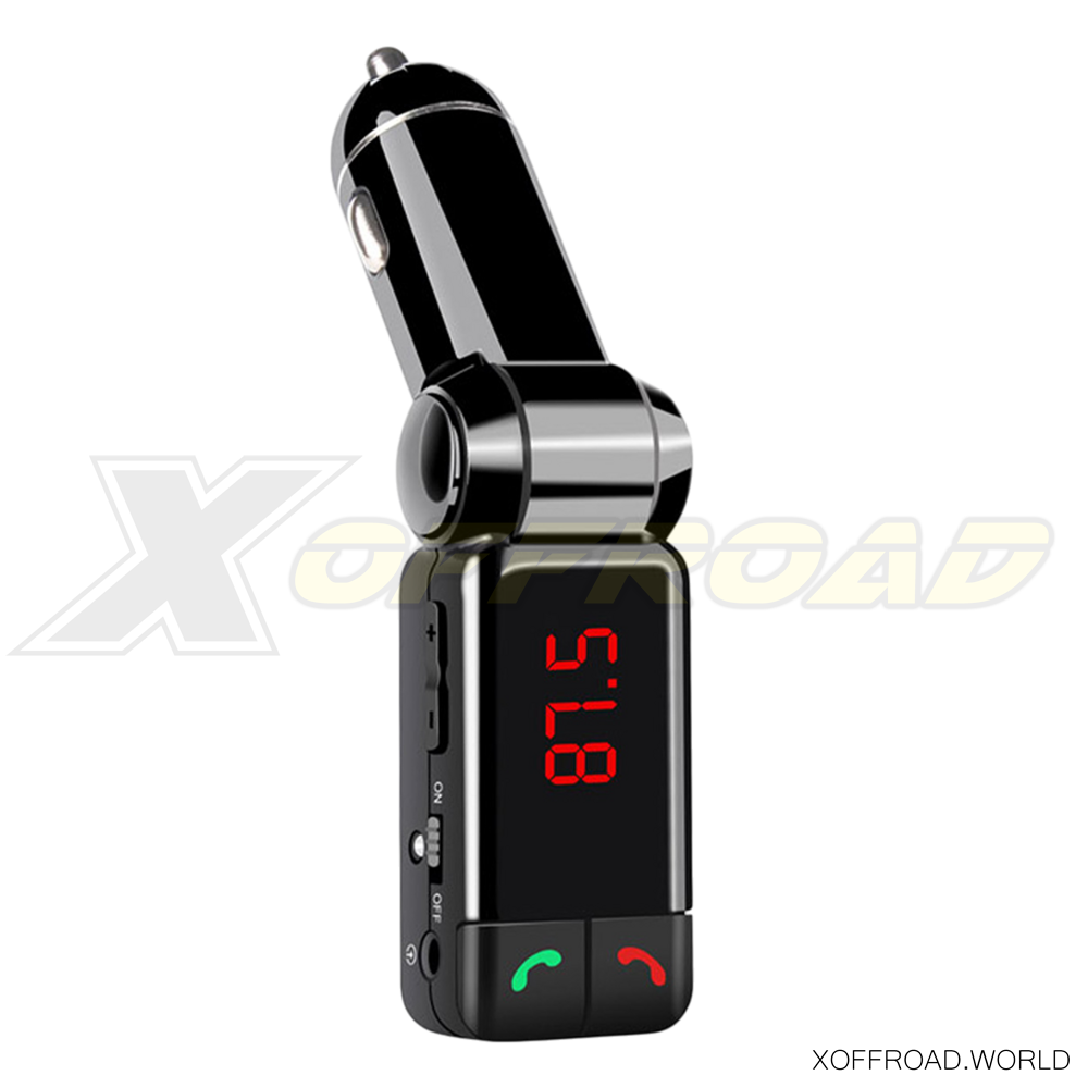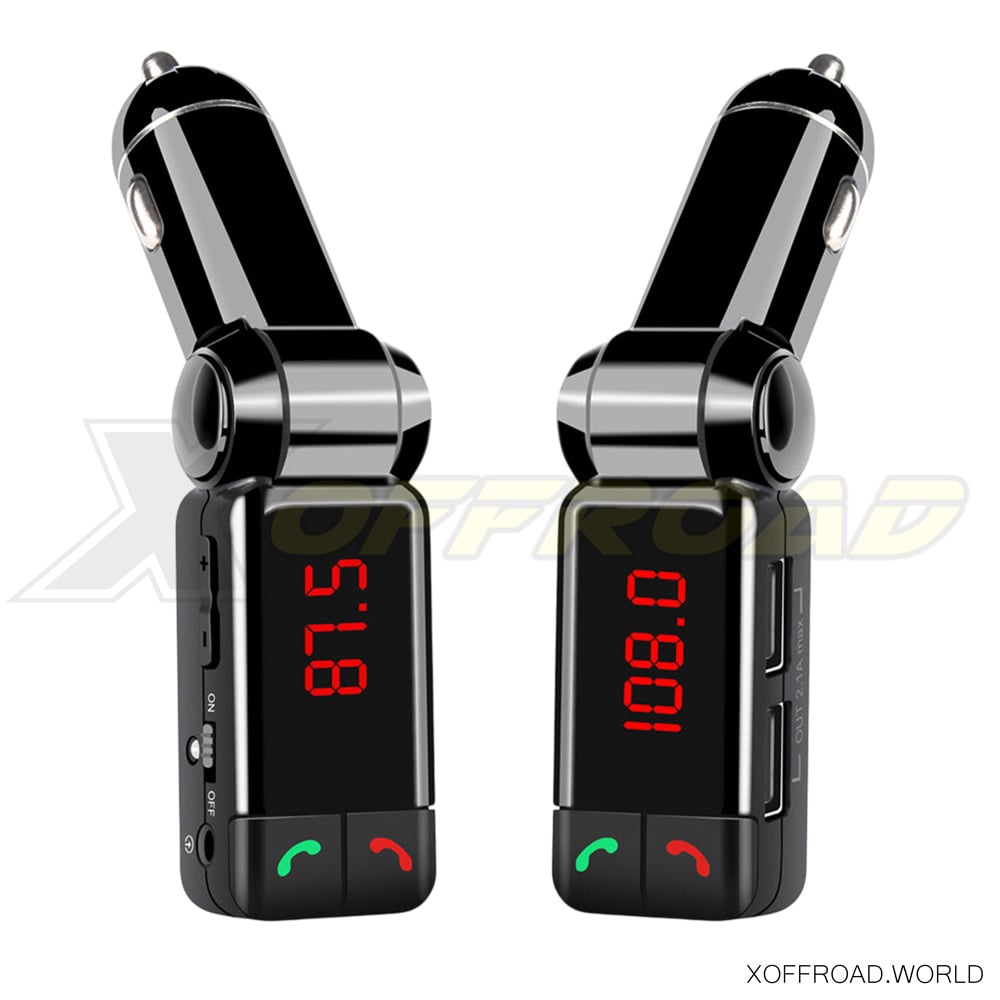 A multifunctional FM transmitter that allows you to play music and make phone calls in your car without a built-in Bluetooth module. The device connects to your phone via Bluetooth and transmits sound to your FM radio. Product features 2× USB-A port – allows you to charge two devices simultaneously or play music from a USB stick, Audio transmission via Bluetooth or USB media, Built-in microphone for hands-free calling. Product is compatible with most smartphones (Android/iOS). Stable audio transmission in the 87.5–108 MHz frequency range. Simple extension of older radio functionality with Bluetooth and USB-A. Safe calls thanks to the hands-free kit plus simultaneous charging of two devices.