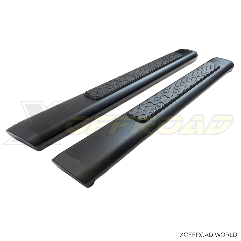 If you have a lifted Wrangler you might be having some trouble getting in and out of it. The X-Offroad Side Armor Steps for your Wrangler JK offer a side step with wheel to wheel coverage without sacrificing it's rugged off road look. The aggressively styled X-Offroad Side Armor Steps bolt directly to the vehicle using the existing mounting points providing maximum off road protection. Now you can have on your Jeep Wrangler JK side steps like Jeep Wrangler JL factory style side steps. The product is painted only with transportation painting and we recommend to paint product before installation. Easy installation.