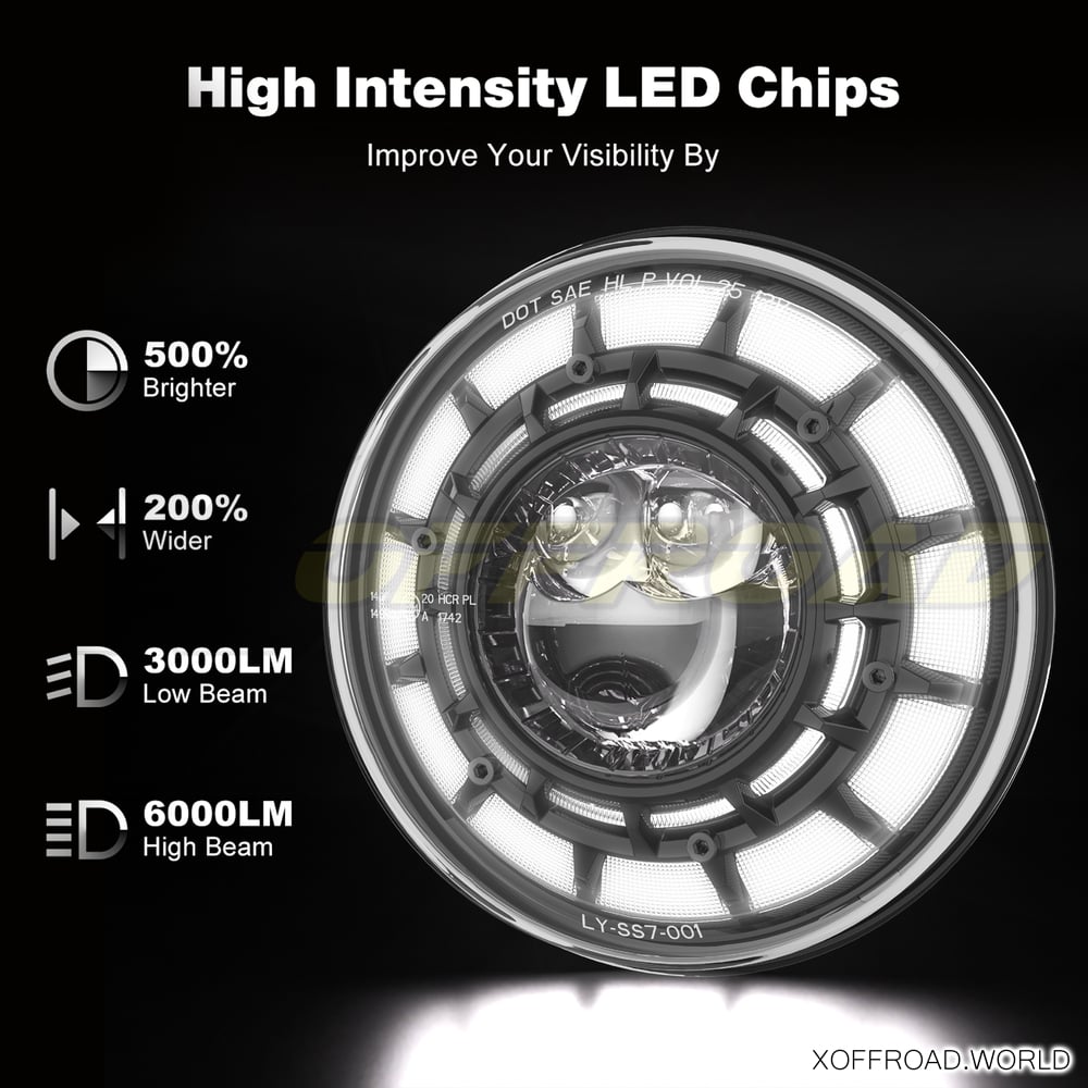 An excellent way to add modern styling to your Jeep is with a pair of X-Offroad 7-Inch LED Alligator Series Headlights. Utilizing a projector lens design, these Axial Headlights will light up the road ahead with a bright focused beam for better nighttime visibility. Replace your factory headlights with a high performance LED light! These LED headlights rapidly increase visibility which will lead to better safety. Headlights come with H4 socket (EU models). H13 to H4 reduction included. Easy Installation: Plug & play installation make this 7" LED a quick and easy replacement for your stock headlights. Sold as pair.
