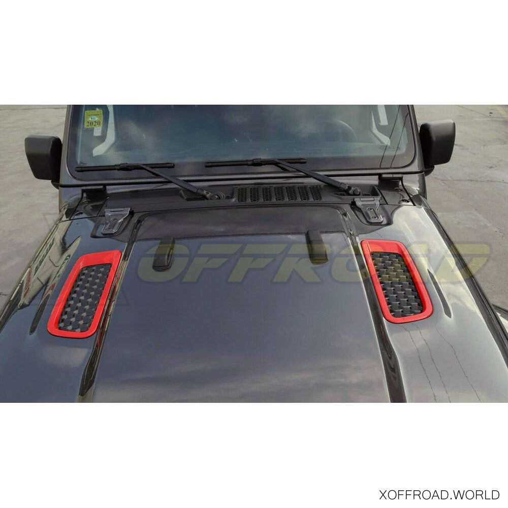 X-Offroad Hood Air Vent Trim Cover is made from ABS plastic with red painting. Includes 3M tape for sticking on the vehicle. Easy installation.
