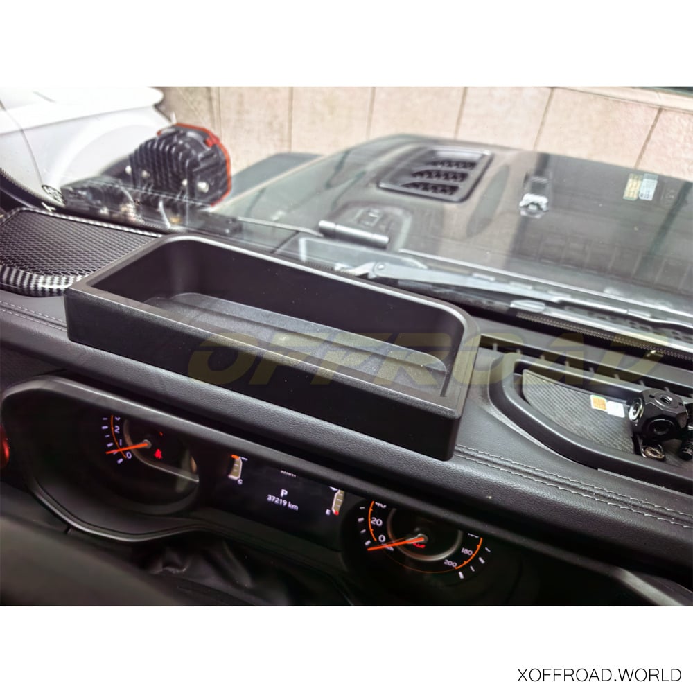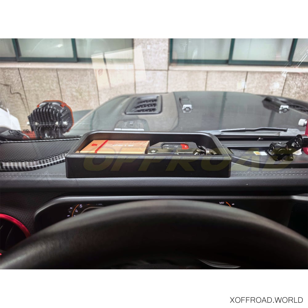 The Jeep Wrangler JL or Gladiator JT enjoys a huge following among off-road enthusiasts, but convenient storage for small items is a challenge. This storage solution holds your small items by converting the coin tray above the radio into useable space. The black color fits perfectly with your Jeep interior for a custom look. Easy installation.